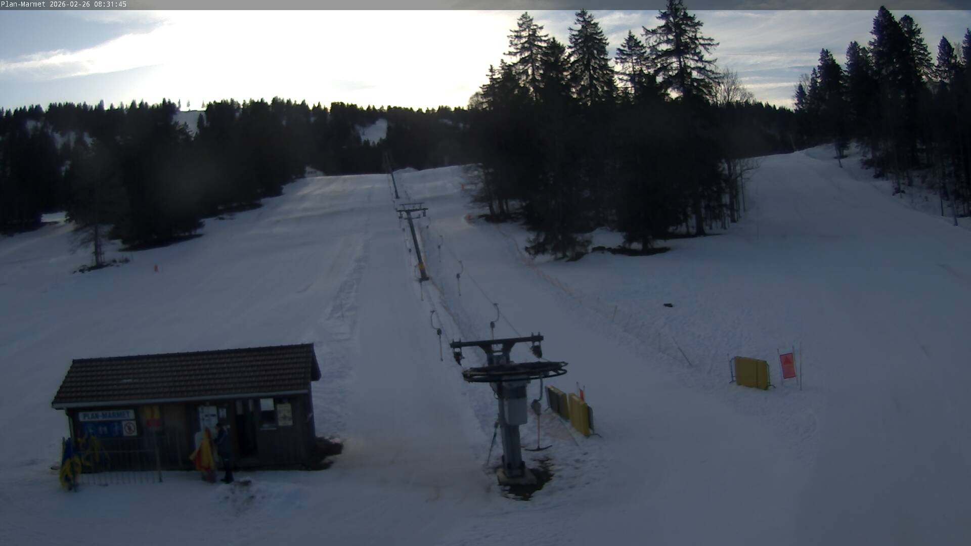 Archived webcam image showing Les Bugnenets Savagnieres valley station on Feb 26, 2026 at 8:25 AM 02:00