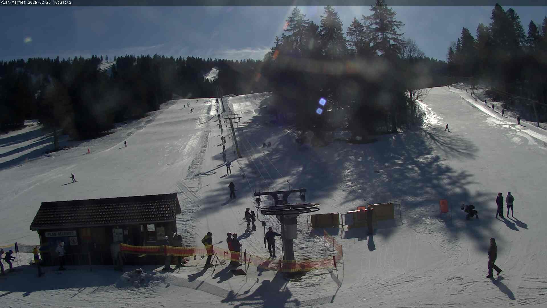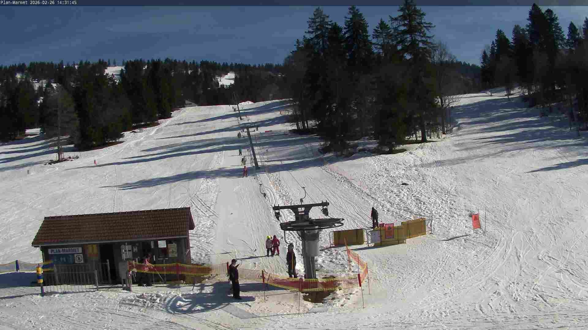 Archived webcam image showing Les Bugnenets Savagnieres valley station on Feb 26, 2026 at 2:25 PM 08:00