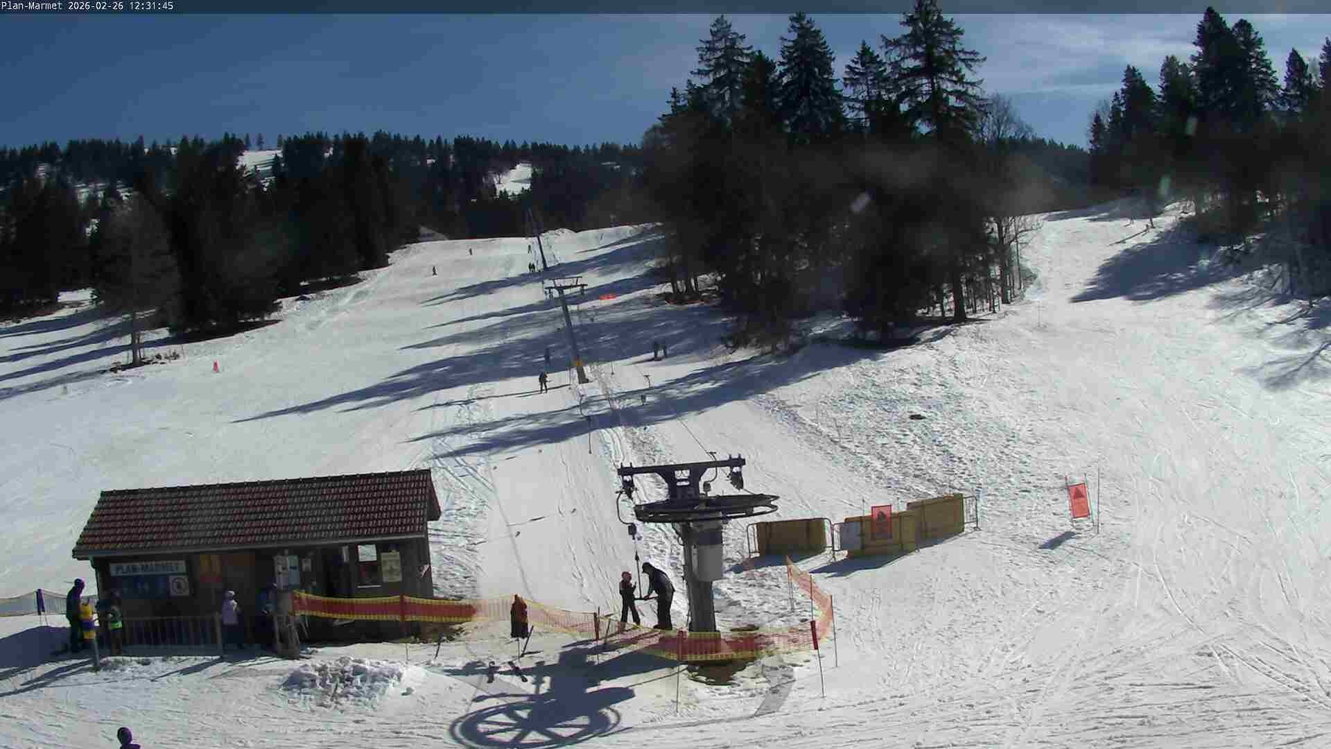 Archived webcam image showing Les Bugnenets Savagnieres valley station on Feb 26, 2026 at 12:25 PM 06:00