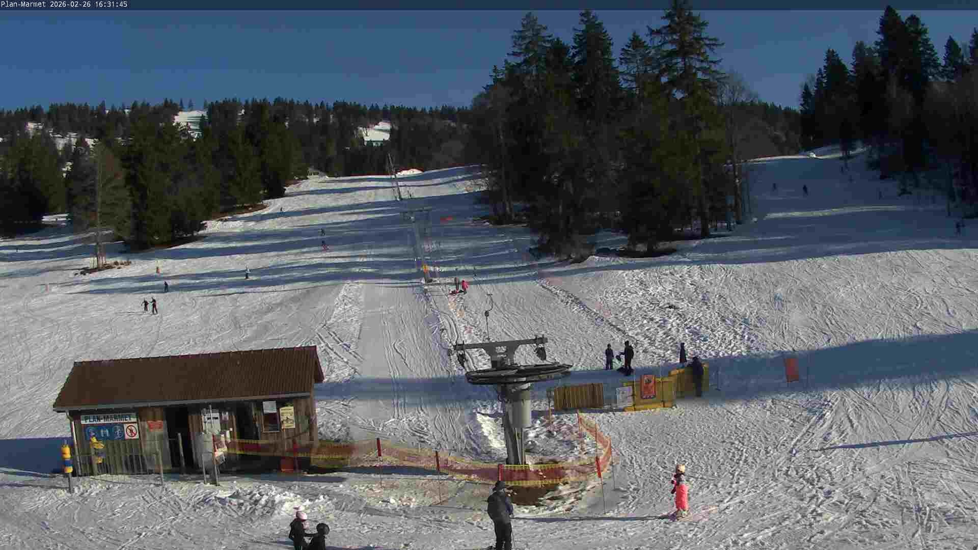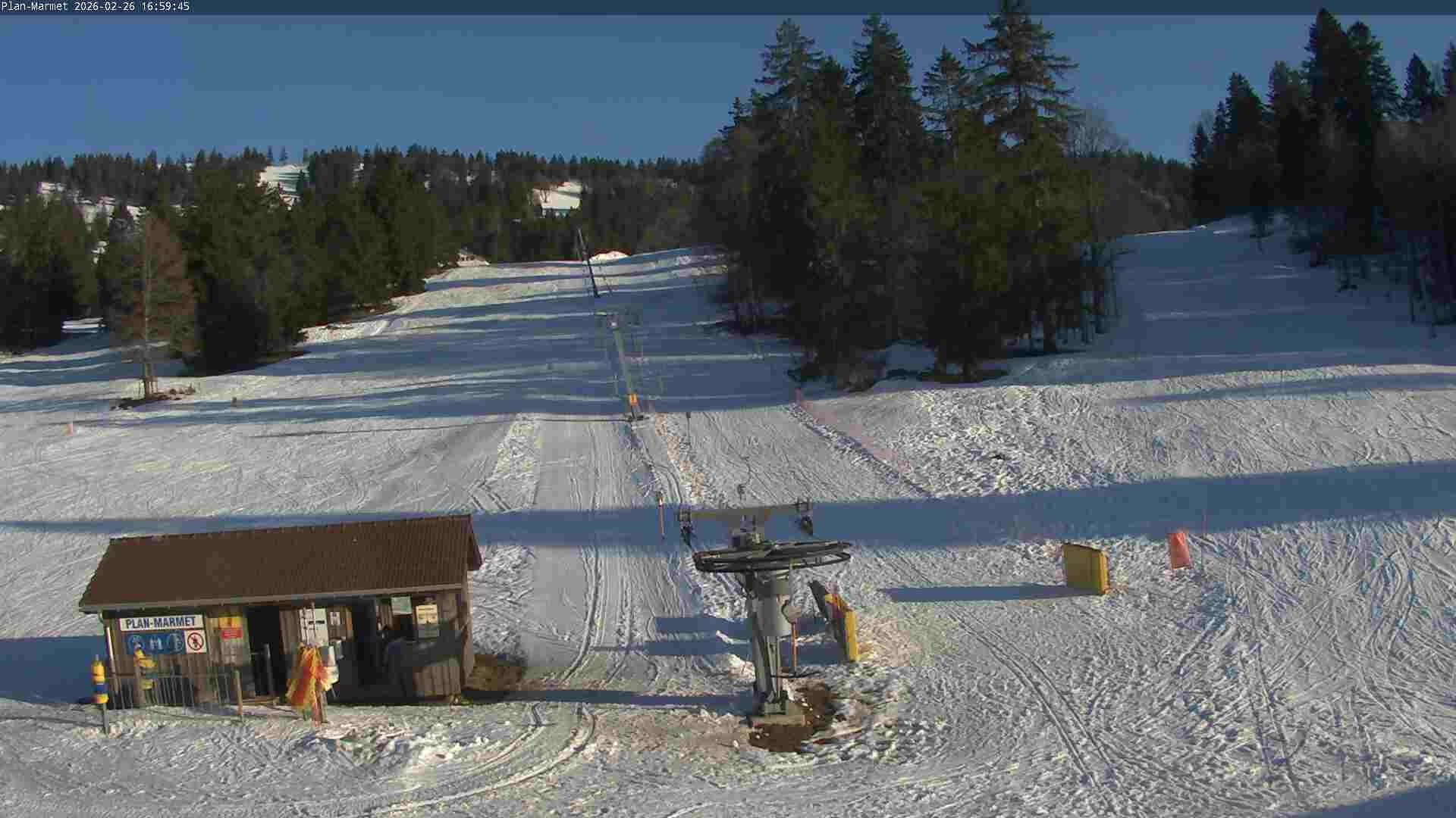 Archived webcam image showing Les Bugnenets Savagnieres valley station on Feb 26, 2026 at 4:25 PM Aktuell
