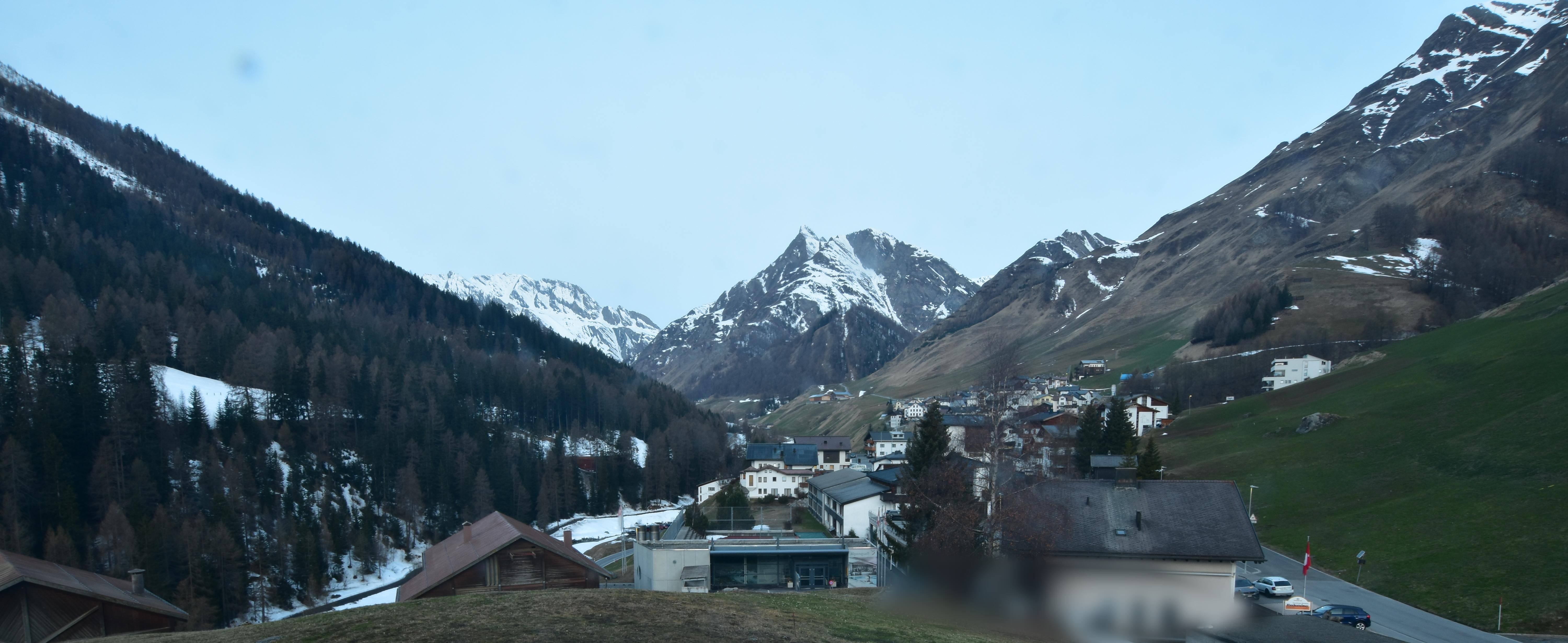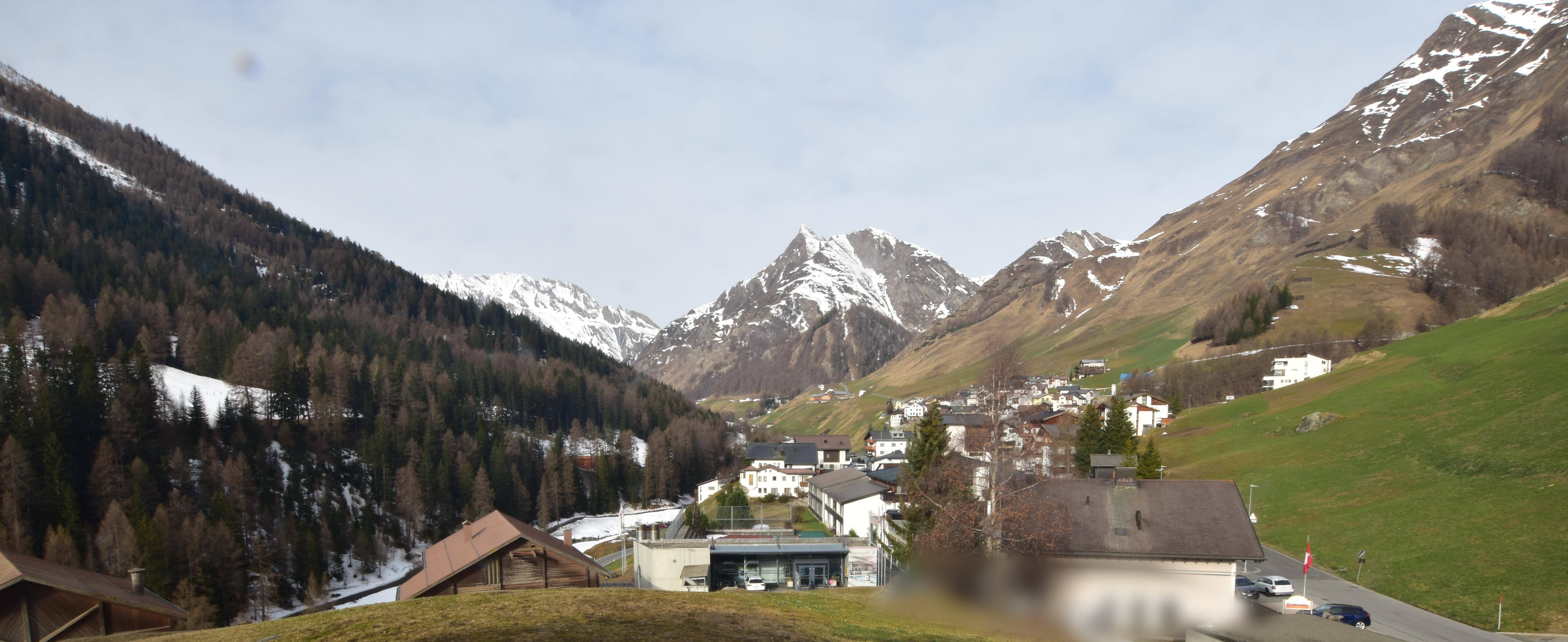 Blick auf das Dorf Compatsch auf 1.700m Höhe in der Region Samnaun