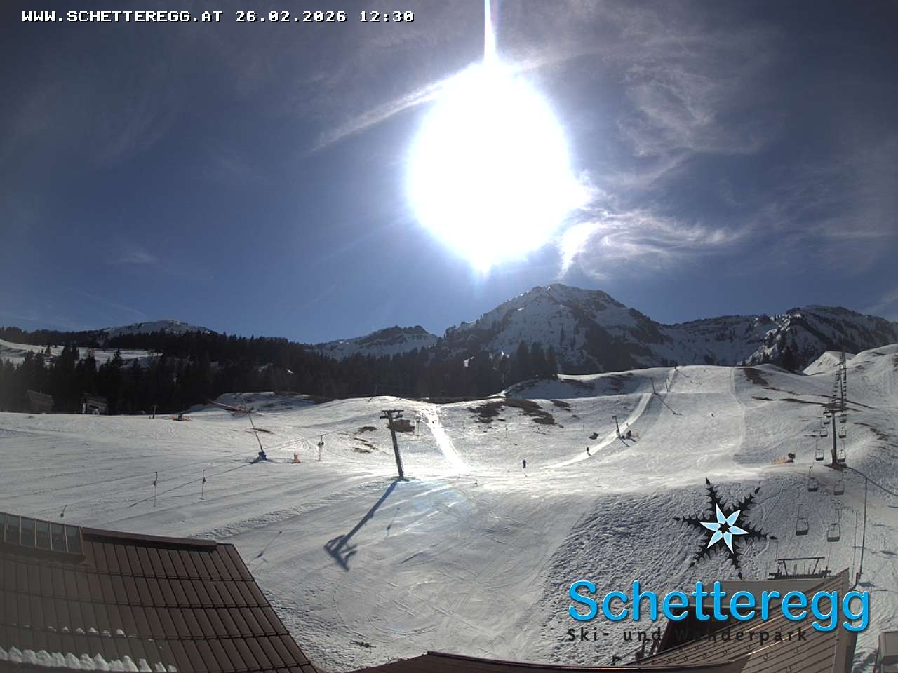 Archived webcam image showing panoramic view alp Schetteregg on Feb 26, 2026 at 12:59 PM 06:00