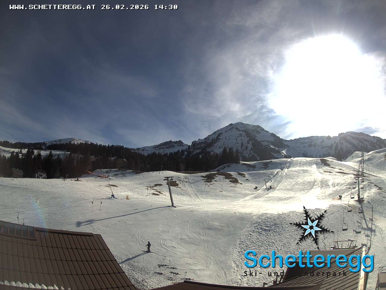 Archived webcam image showing panoramic view alp Schetteregg on Feb 26, 2026 at 2:59 PM 08:00
