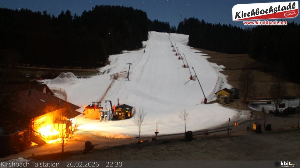 Archived webcam image showing Lift and run at the ski resort Schidorf Kirchbach on 26 Feb 2026 at 04:39 03:00