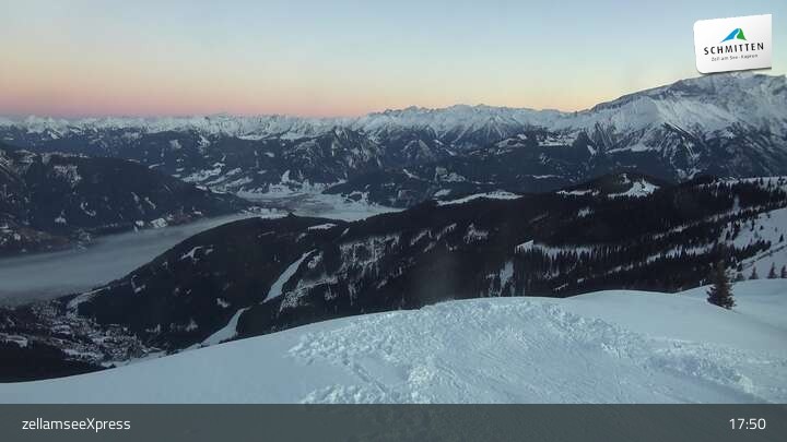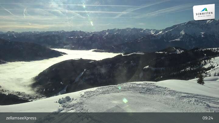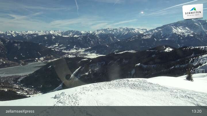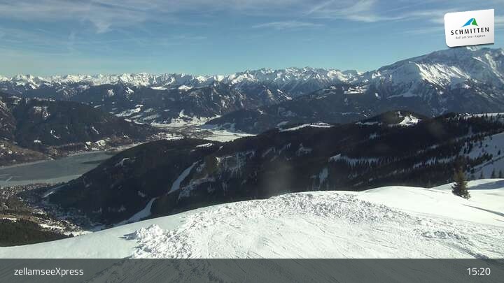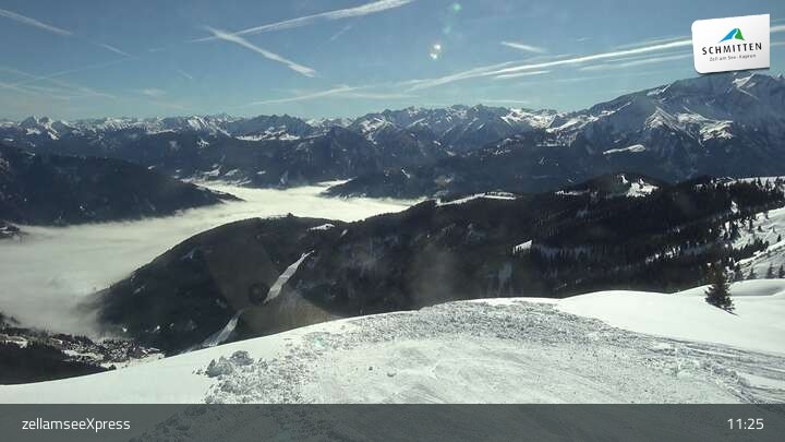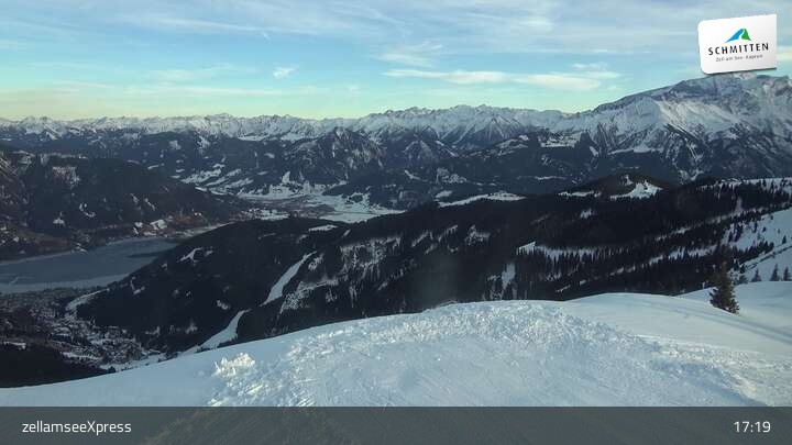Die Webcam zeigt einen herrlichen Blick von der Bergstation des zellamseeXpress auf dem Salersbachköpfl über das Skigebiet Schmitten und den Ort Zell am See im Salzburger Land.