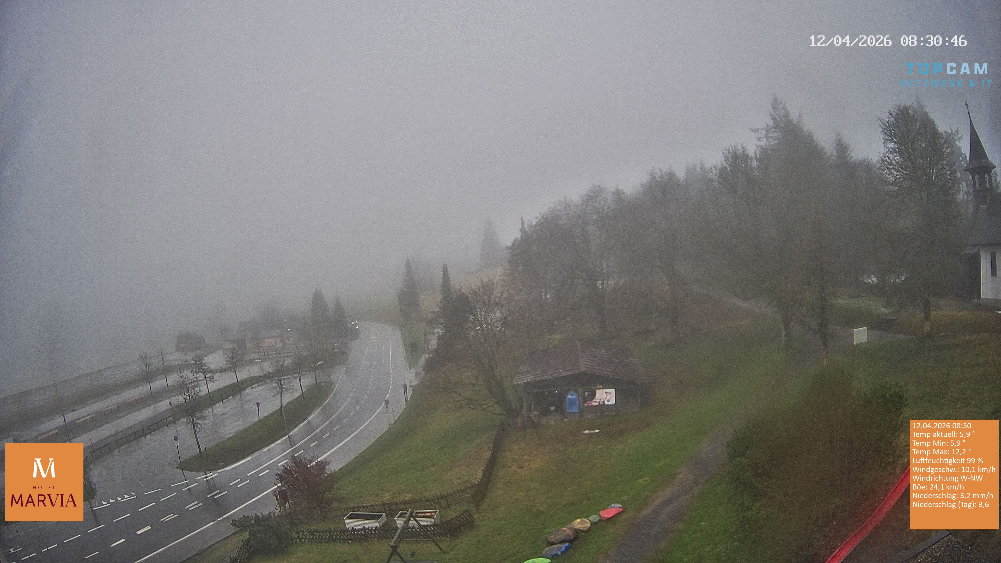 Archiviertes Webcam Bild: Blick vom Berghof Fetz in Bödele am 12.04.2026 um 08:50 Uhr 08:00