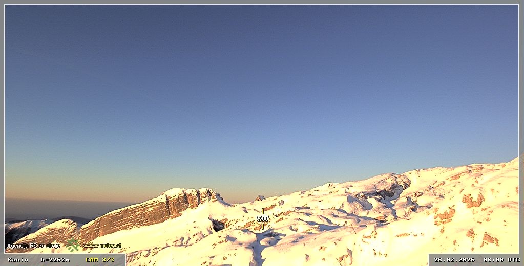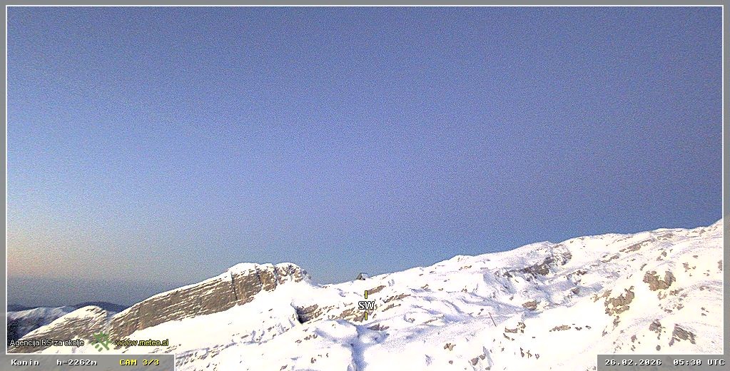 Archiviertes Webcam Bild: Skigebiet Sella Nevea - Bovec Kanin - Blick nach Südwesten am 26 Feb 2026 um 06:10 Uhr 05:00