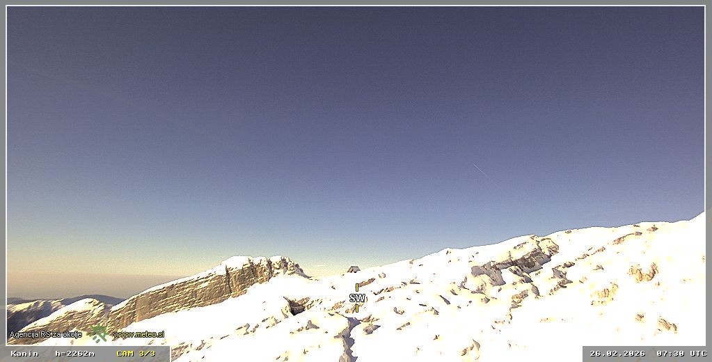 Archiviertes Webcam Bild: Skigebiet Sella Nevea - Bovec Kanin - Blick nach Südwesten am 26 Feb 2026 um 08:10 Uhr 07:00