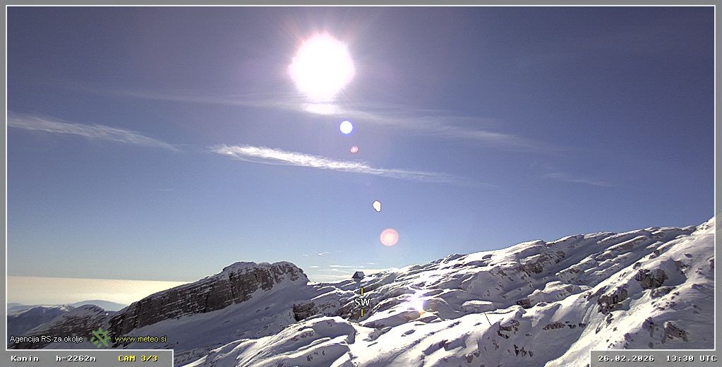 Archiviertes Webcam Bild: Skigebiet Sella Nevea - Bovec Kanin - Blick nach Südwesten am 26 Feb 2026 um 14:10 Uhr 13:00