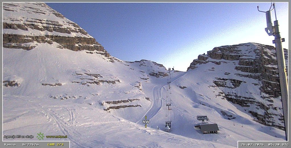 Archiviertes Webcam Bild: Skigebiet Sella Nevea - Bovec Kanin - Blick Richtung Nordwesten am 26 Feb 2026 um 06:10 Uhr 05:00