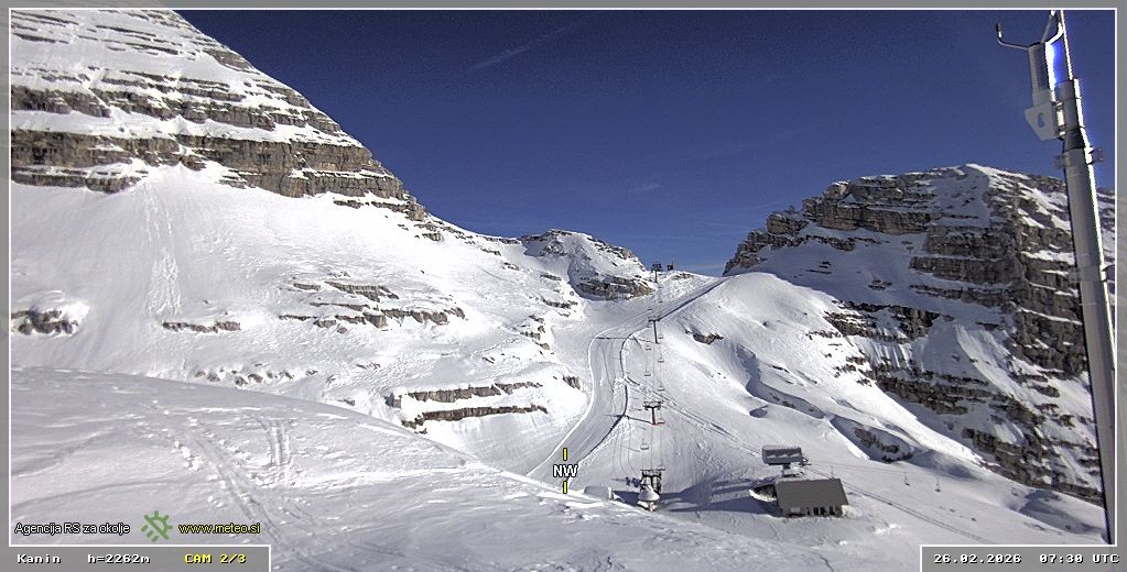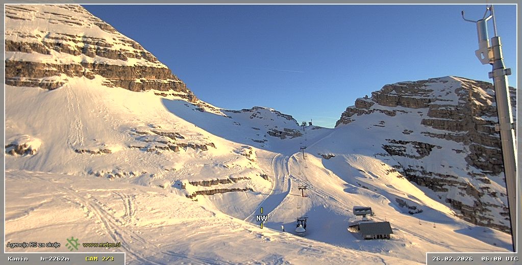 Archiviertes Webcam Bild: Skigebiet Sella Nevea - Bovec Kanin - Blick Richtung Nordwesten am 26 Feb 2026 um 07:10 Uhr 06:00
