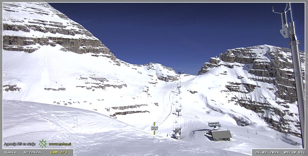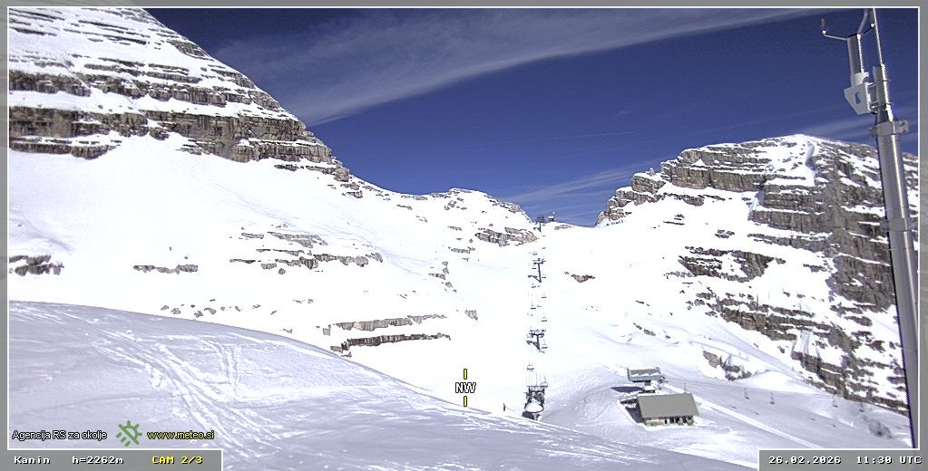 Archiviertes Webcam Bild: Skigebiet Sella Nevea - Bovec Kanin - Blick Richtung Nordwesten am 26 Feb 2026 um 12:10 Uhr 11:00