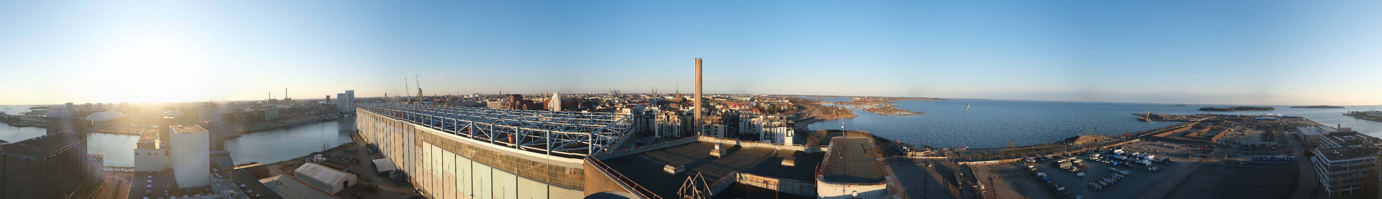 Diese Kamera bietet einen herrlichen Panoramablick von der Werft in Helsinki über die finnische Hauptstadt.