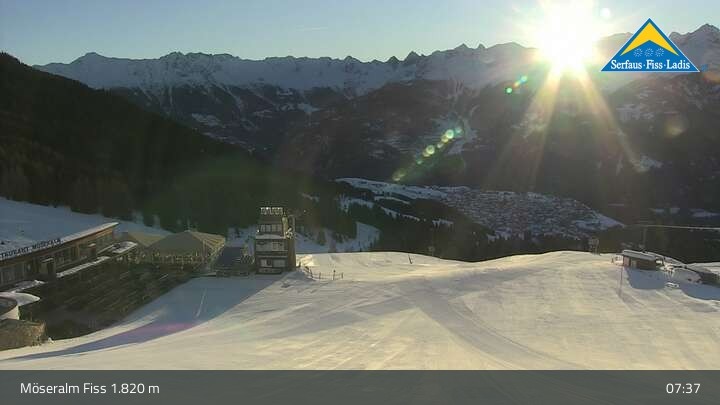 Archiviertes Webcam Bild: Möseralm oberhalb von Fiss am 26 Feb 2026 um 07:10 Uhr 06:00