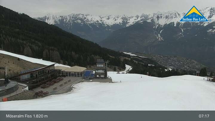 Archiviertes Webcam Bild: Möseralm oberhalb von Fiss am 13.04.2026 um 07:28 Uhr 07:00
