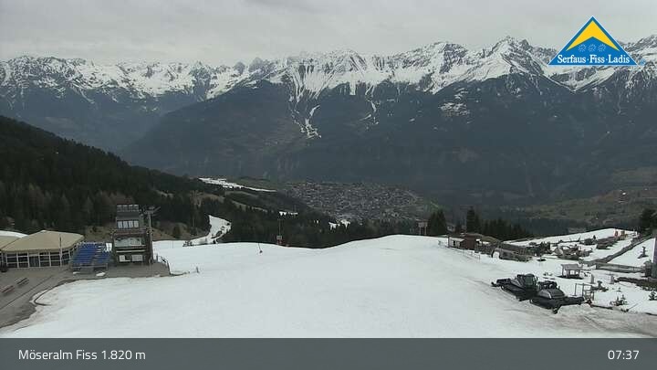 Archiviertes Webcam Bild: Möseralm oberhalb von Fiss am 13.04.2026 um 08:28 Uhr 08:00