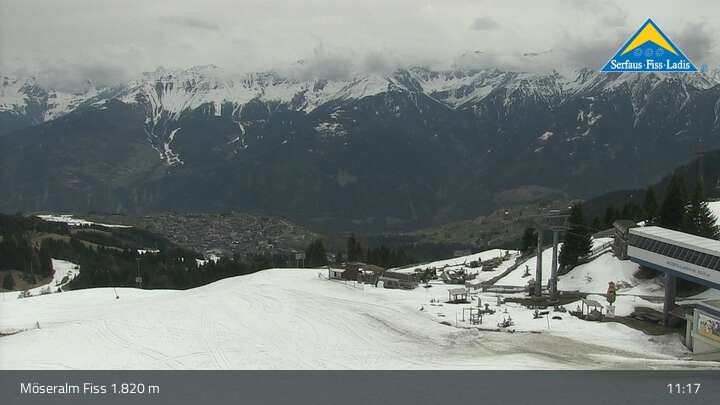 Archiviertes Webcam Bild: Möseralm oberhalb von Fiss am 13.04.2026 um 11:28 Uhr Aktuell