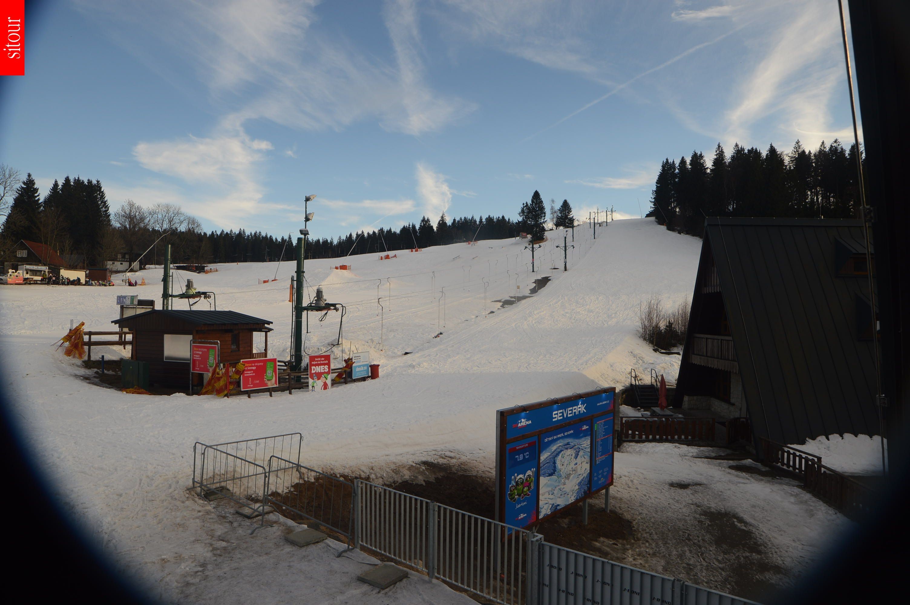 Hier siehst du die Kinderwelt mit Zauberteppich und Skikarussell im tschechischen Skigebiet Severák. Severák gehört wie Bedrichov und Tanvaldsky Spicak zur Ski Arena Jizerky.