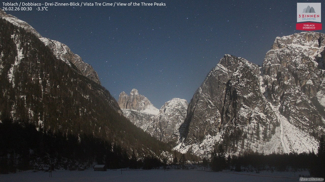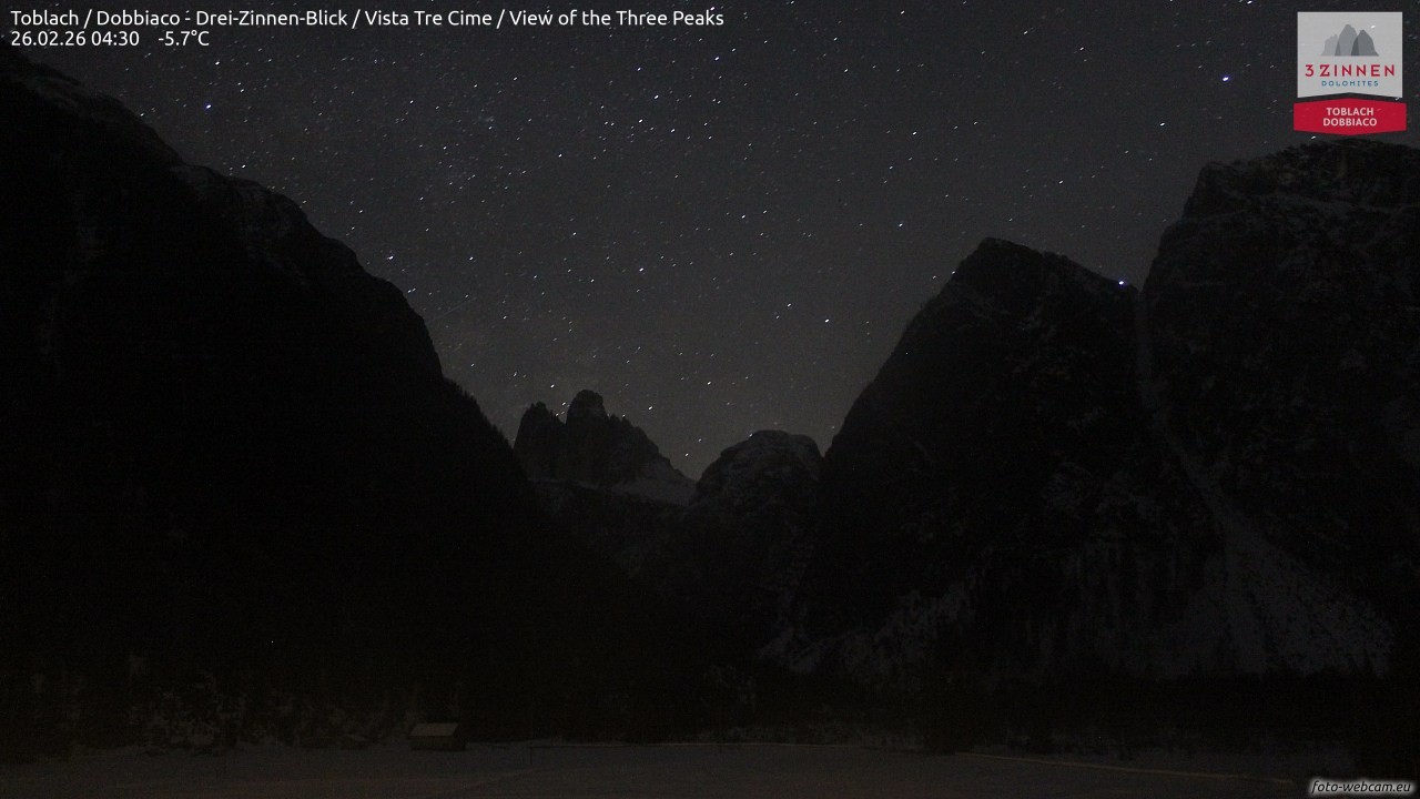 Archived webcam image showing Toblach, South Tyrol on Feb 26, 2026 at 4:49 AM 22:00