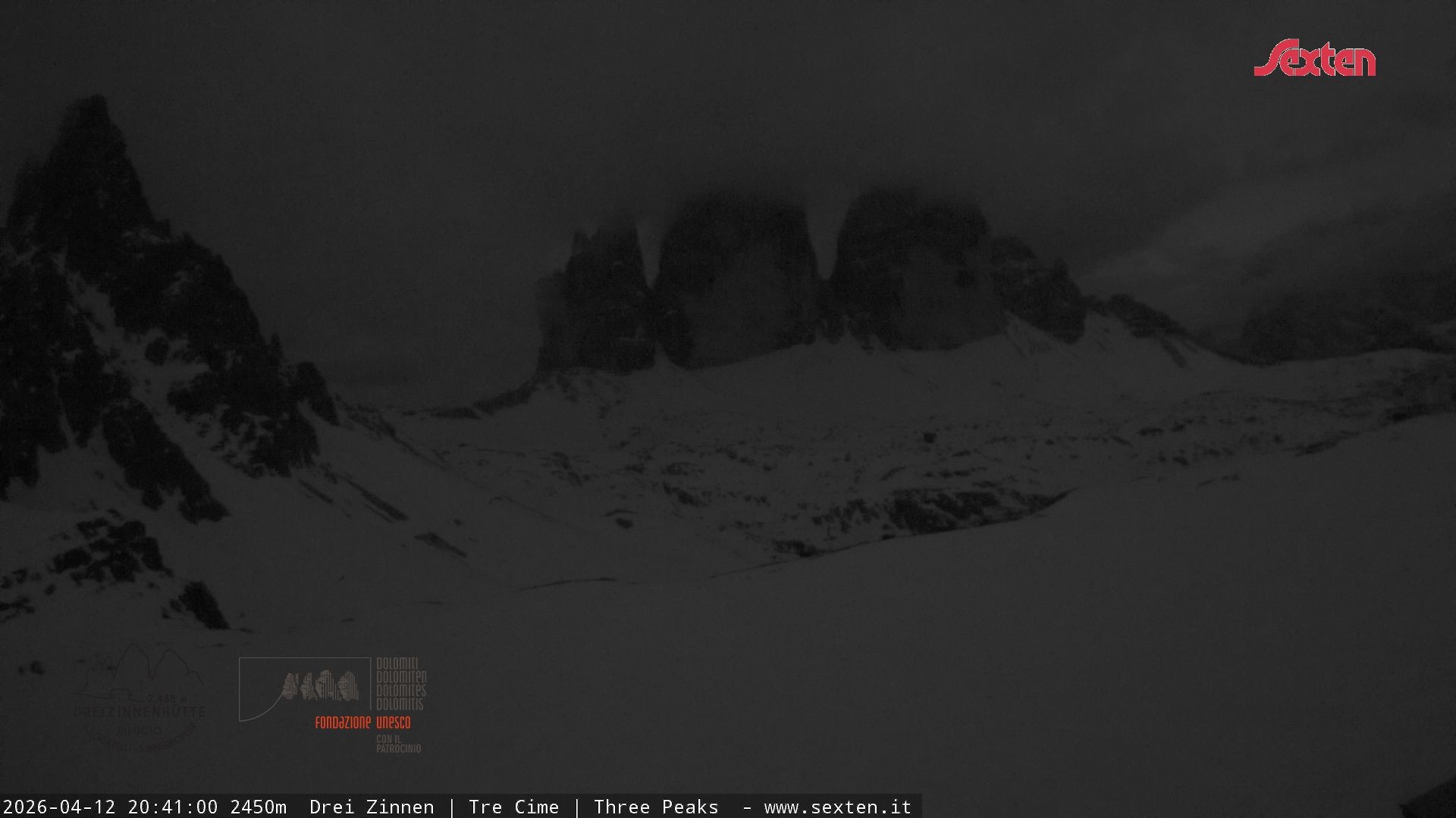 Archiviertes Webcam Bild: Dreizinnenhütte Südtirol: Blick auf die 3 Zinnen am 12.04.2026 um 00:09 Uhr 00:00