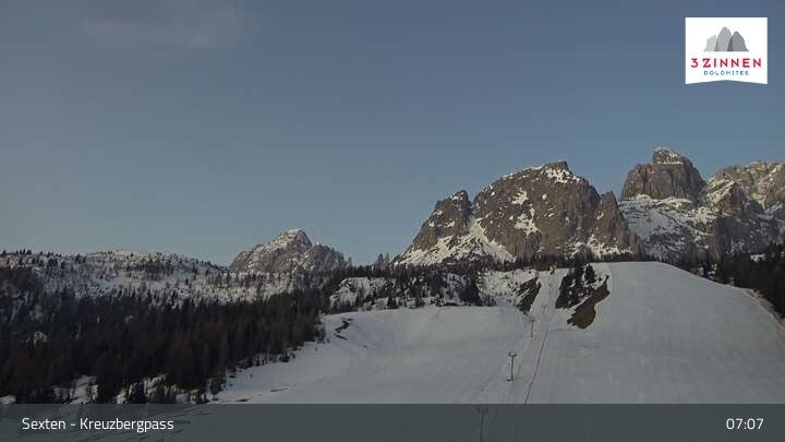 Archiviertes Webcam Bild: 3 Zinnen Dolomiten: Kreuzbergpass am 12.04.2026 um 07:44 Uhr 07:00