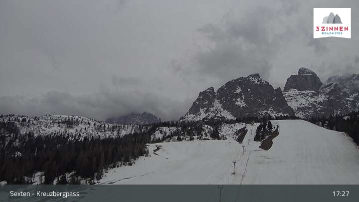 Archiviertes Webcam Bild: 3 Zinnen Dolomiten: Kreuzbergpass am 12.04.2026 um 17:44 Uhr 17:00