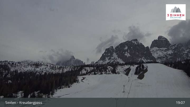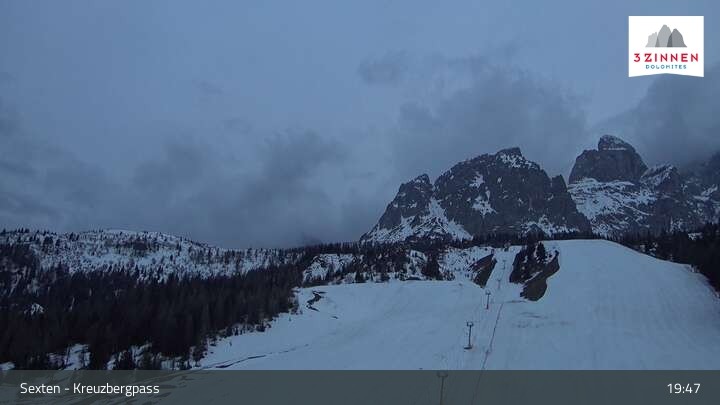Archiviertes Webcam Bild: 3 Zinnen Dolomiten: Kreuzbergpass am 12.04.2026 um 19:44 Uhr 19:00