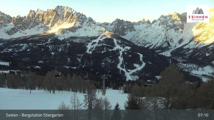 Archived webcam image showing Stiergarten Mountain, Sexten Dolomites on 26 Feb 2026 at 07:12 06:00