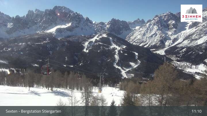 Archived webcam image showing Stiergarten Mountain, Sexten Dolomites on 26 Feb 2026 at 11:12 10:00