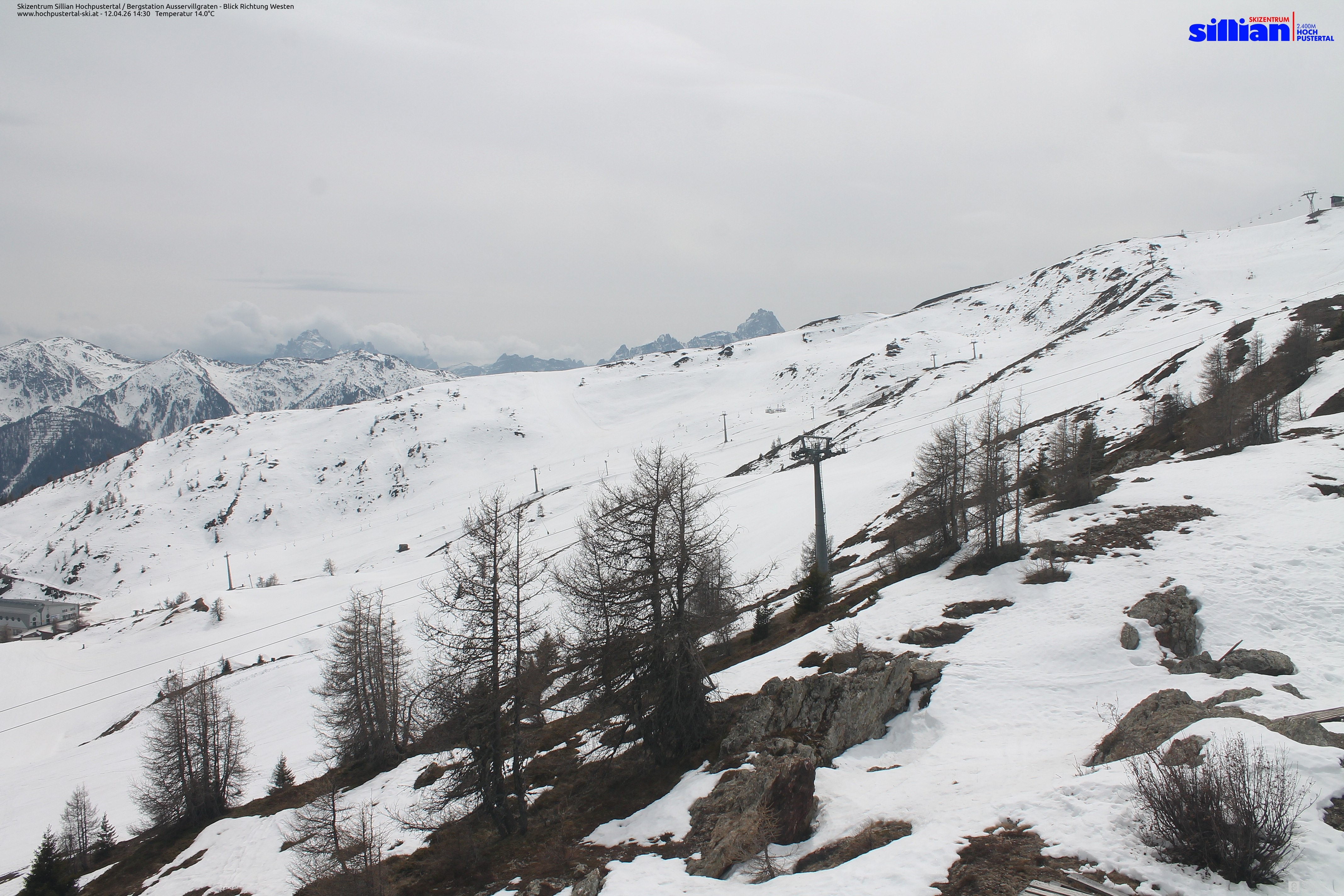 Archiviertes Webcam Bild: Ausservillgraten Bergstation am 12.04.2026 um 14:54 Uhr 14:00