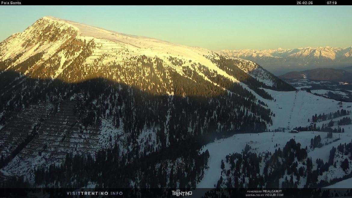 Archived webcam image showing Val di Fiemme, Pala Santa on 26 Feb 2026 at 08:39 07:00