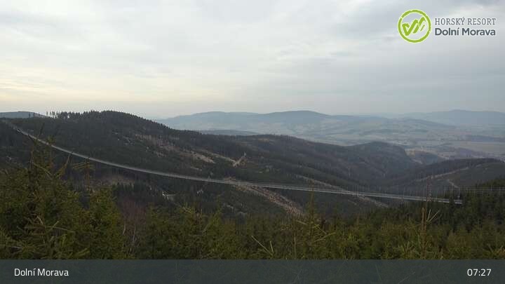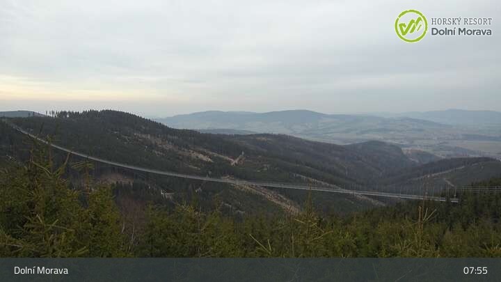 Archiviertes Webcam Bild: Dolní Morava: Sneznik Bergstation und Hängebrücke am 12.04.2026 um 07:48 Uhr 07:00