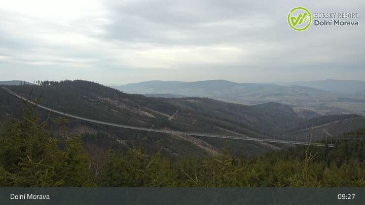 Archiviertes Webcam Bild: Dolní Morava: Sneznik Bergstation und Hängebrücke am 12.04.2026 um 09:48 Uhr 09:00