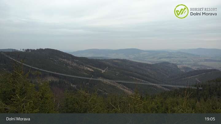 Archiviertes Webcam Bild: Dolní Morava: Sneznik Bergstation und Hängebrücke am 12.04.2026 um 19:48 Uhr 19:00