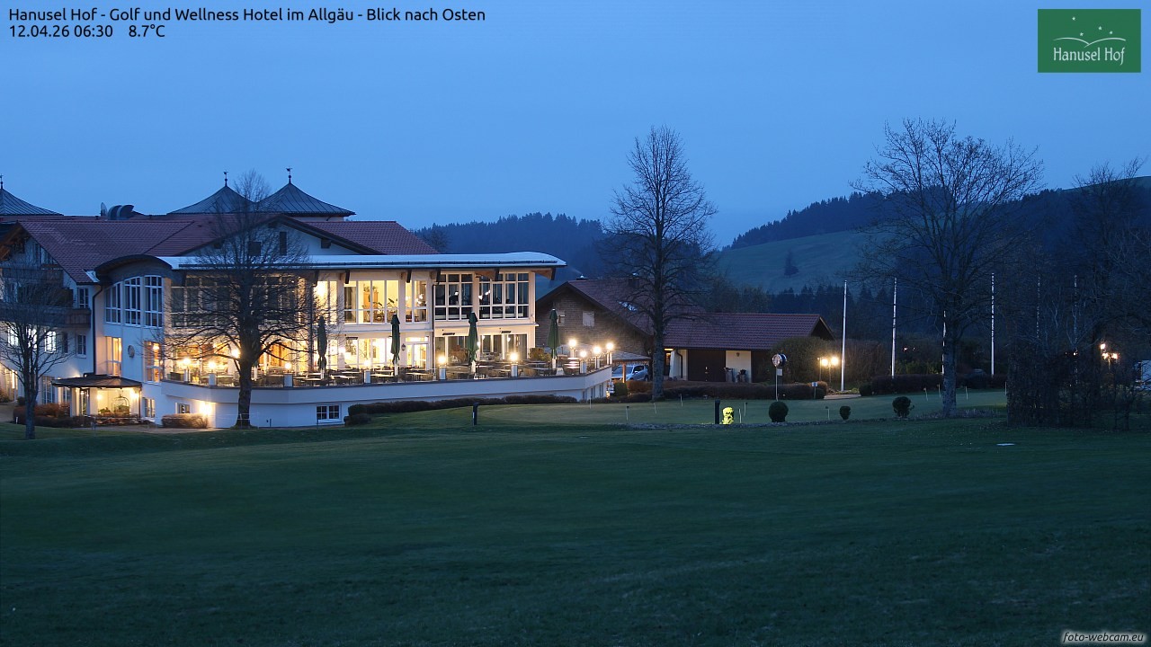Die Webcam befindet sich am Golf und Wellness Hotel Hanusel Hof im Allgäu.