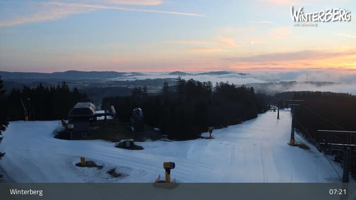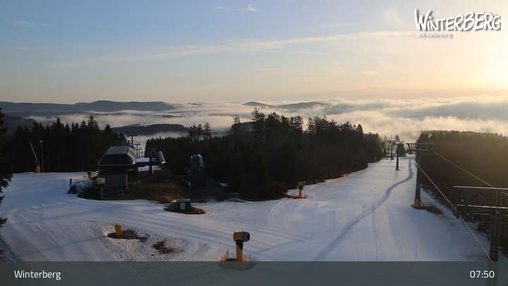 Archiviertes Webcam Bild: Winterberg: Rundumblick vom Bremberg am 26.02.2026 um 07:57 Uhr 07:00