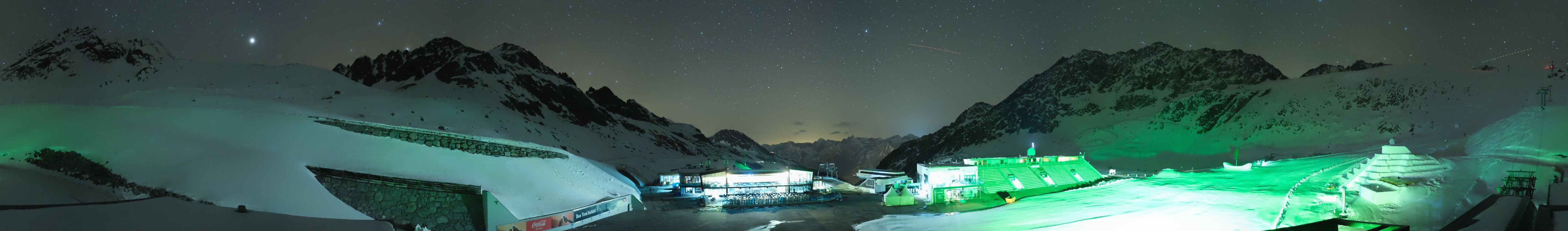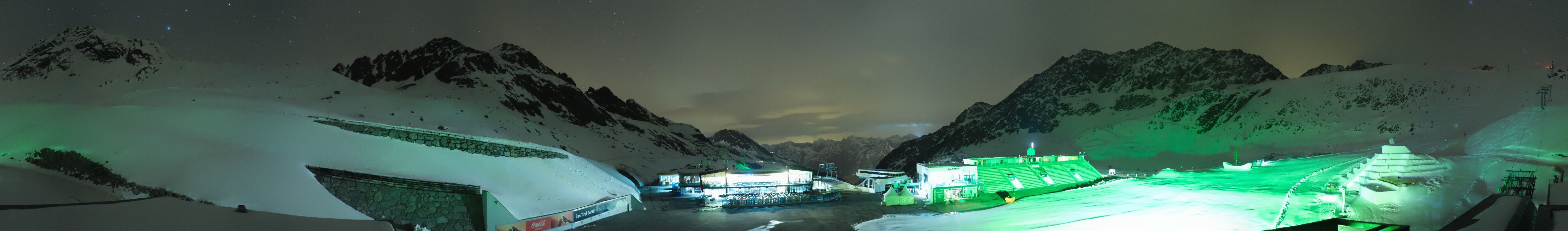 Archiviertes Webcam Bild: Sölden Rettenbachgletscher: Weltcuptribüne und Talstation am 12.04.2026 um 00:52 Uhr 00:00