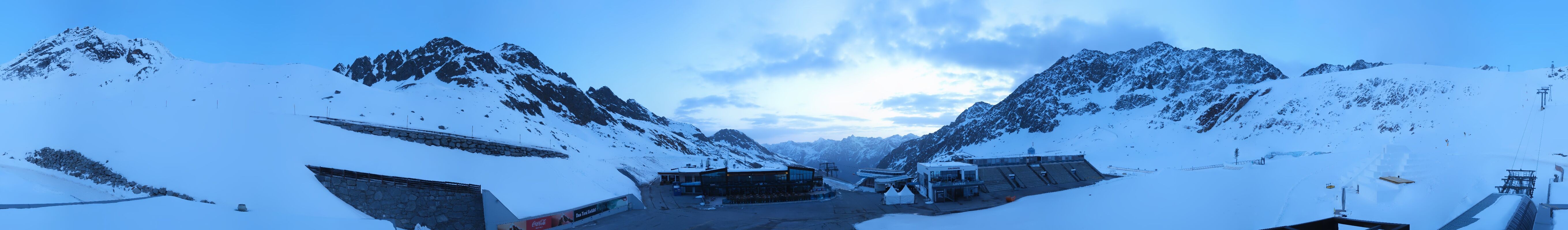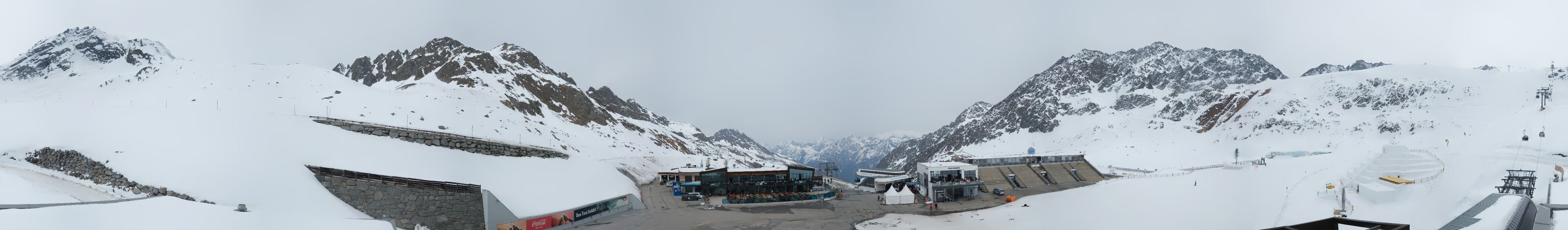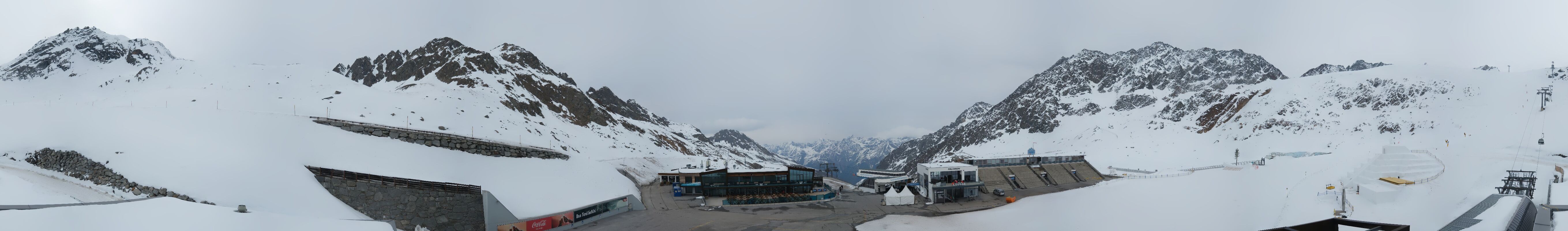 Archiviertes Webcam Bild: Sölden Rettenbachgletscher: Weltcuptribüne und Talstation am 12.04.2026 um 07:52 Uhr 07:00