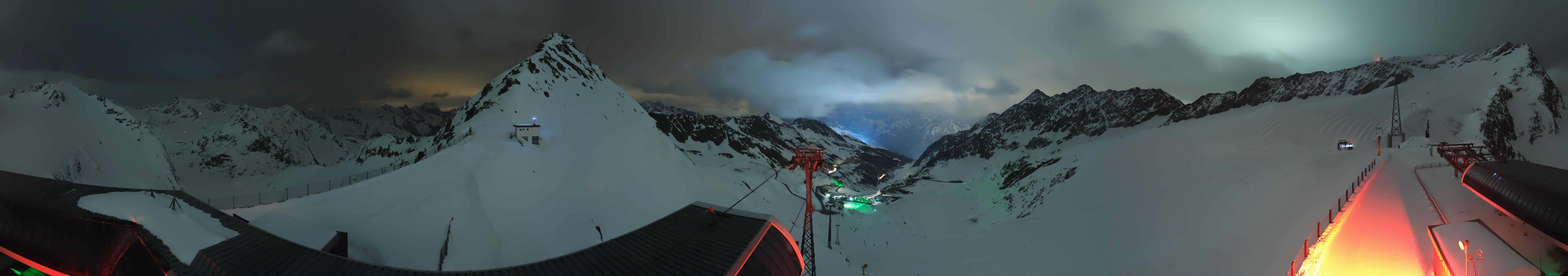 Archiviertes Webcam Bild: Sölden Rettenbachgletscher: Weltcupstrecke an der Schwarze Schneid Bahn am 12.04.2026 um 22:37 Uhr Aktuell