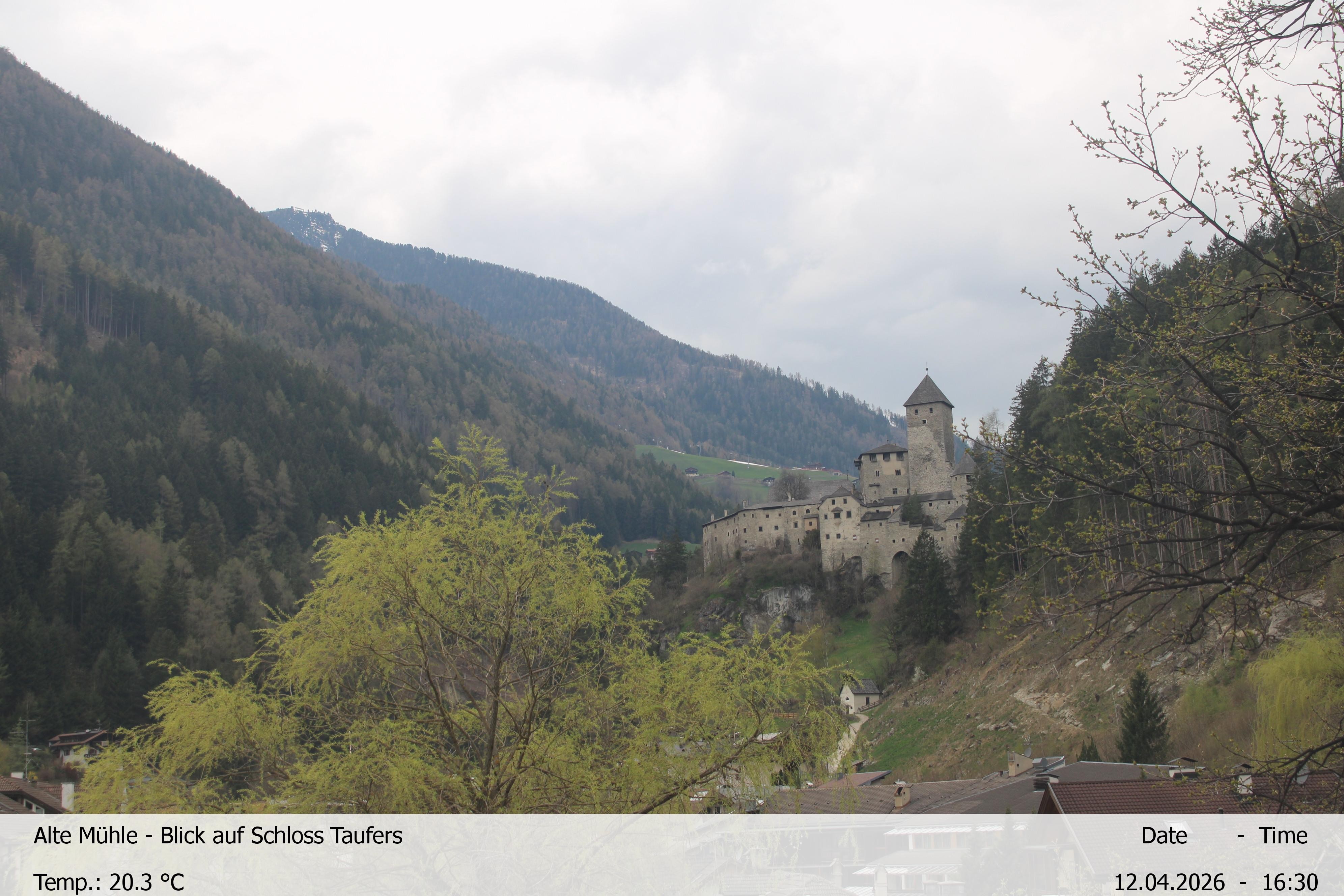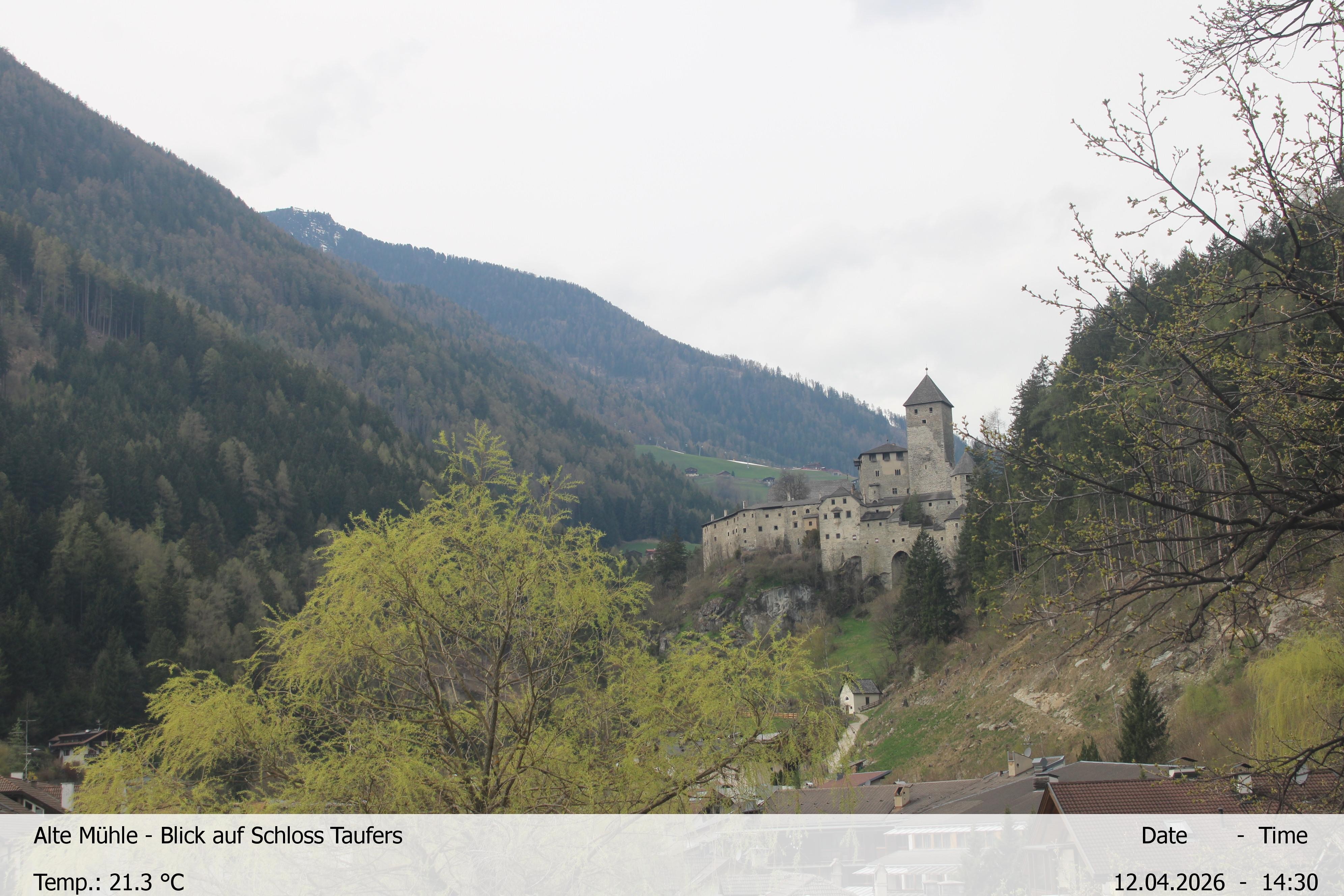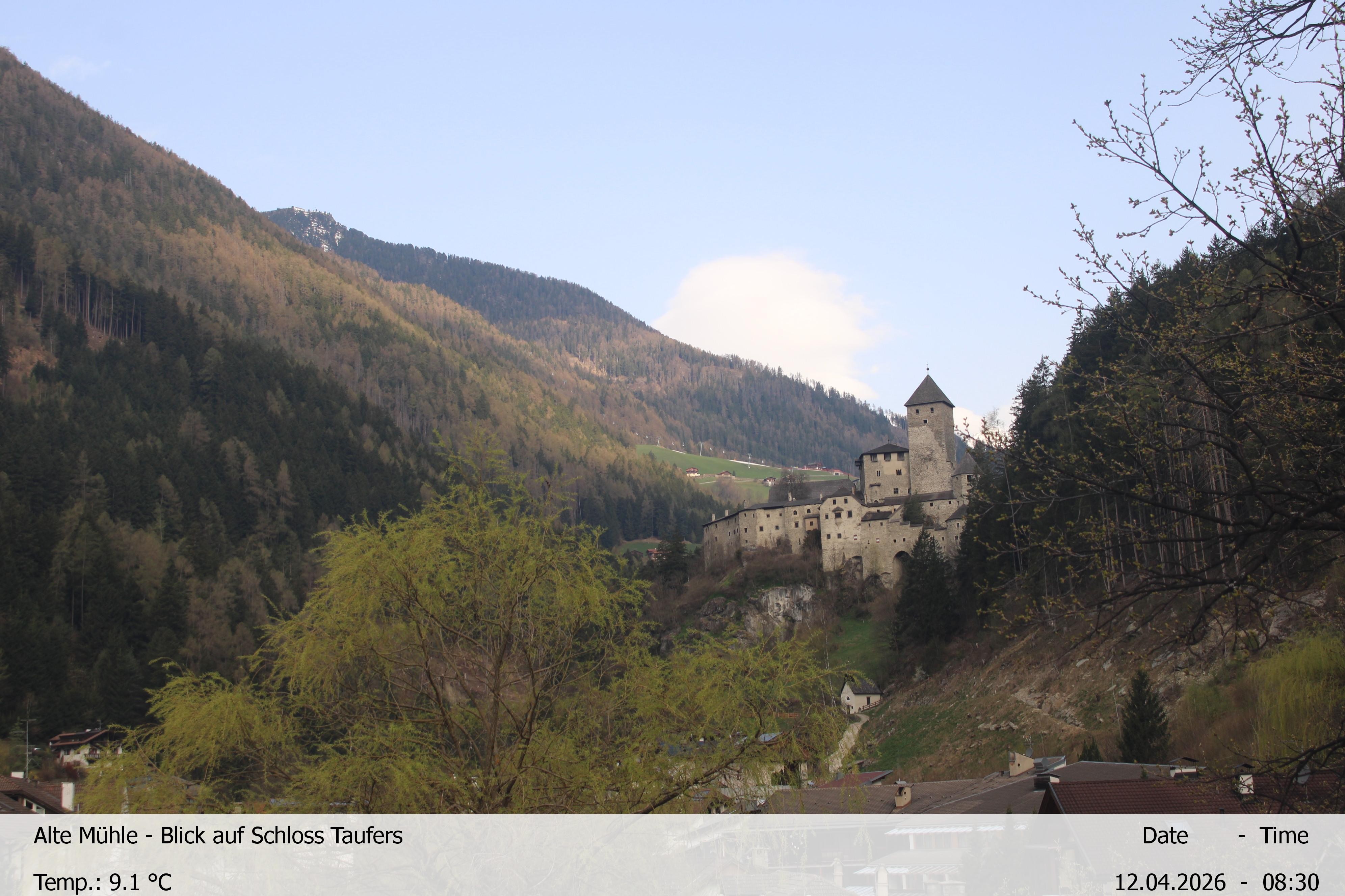Archived webcam image showing View towards castle Taufers in South Tyrol on 12 Apr 2026 at 08:28 07:00