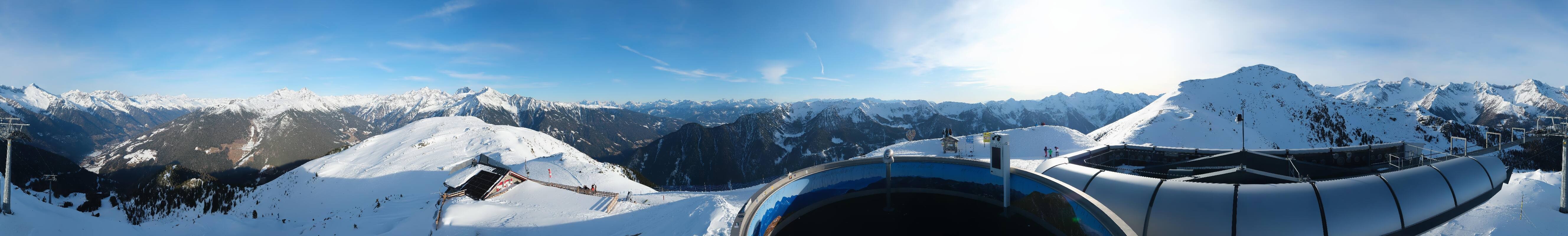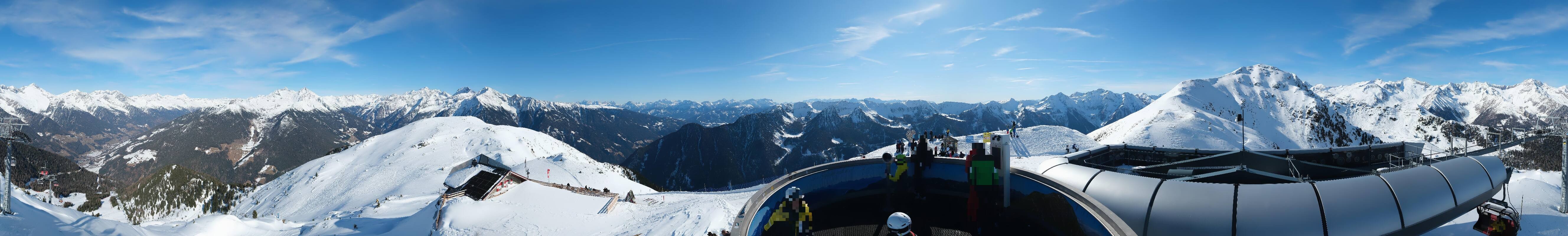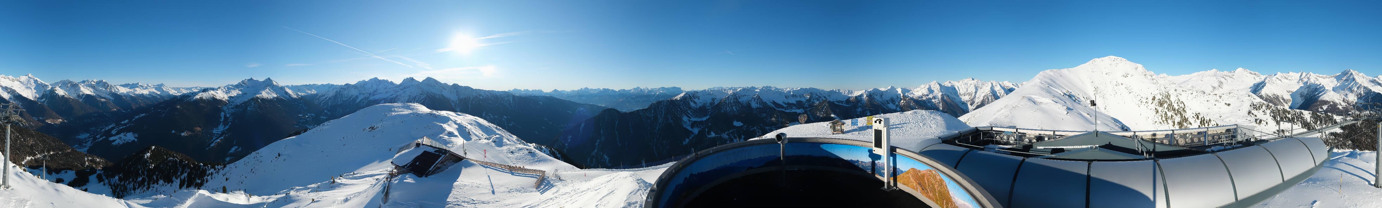 Panoramablick von der Bergstation Sonnklar im Skigebiet Speikboden. Dort in der Nähe befindet sich auch die Sonnklarhütte.