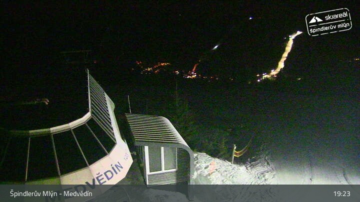 Archiviertes Webcam Bild: Spindlermühle - Bergstation Sessellift Medvědín am 26 Feb 2026 um 19:08 Uhr Aktuell