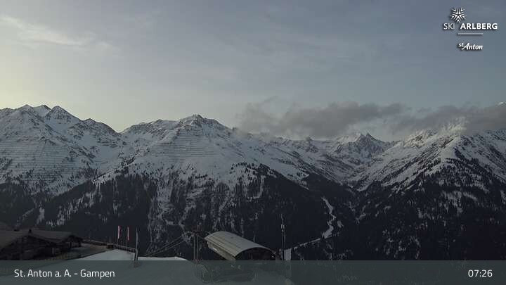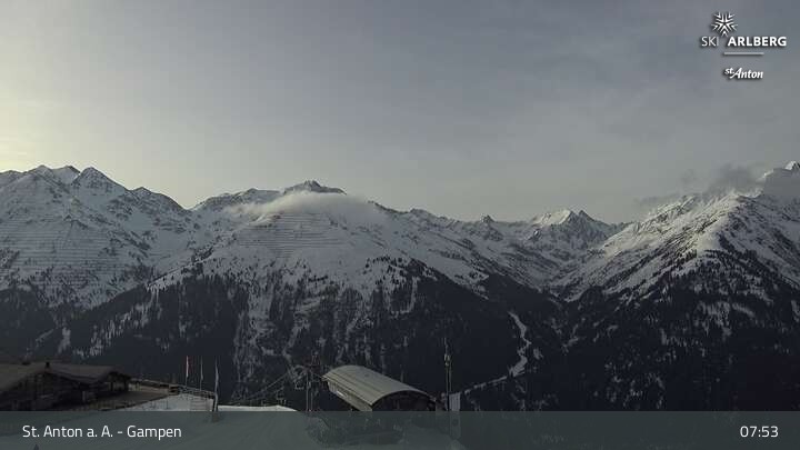 Archiviertes Webcam Bild: St. Anton - Bergstation Gampenbahn am 12.04.2026 um 07:55 Uhr 07:00