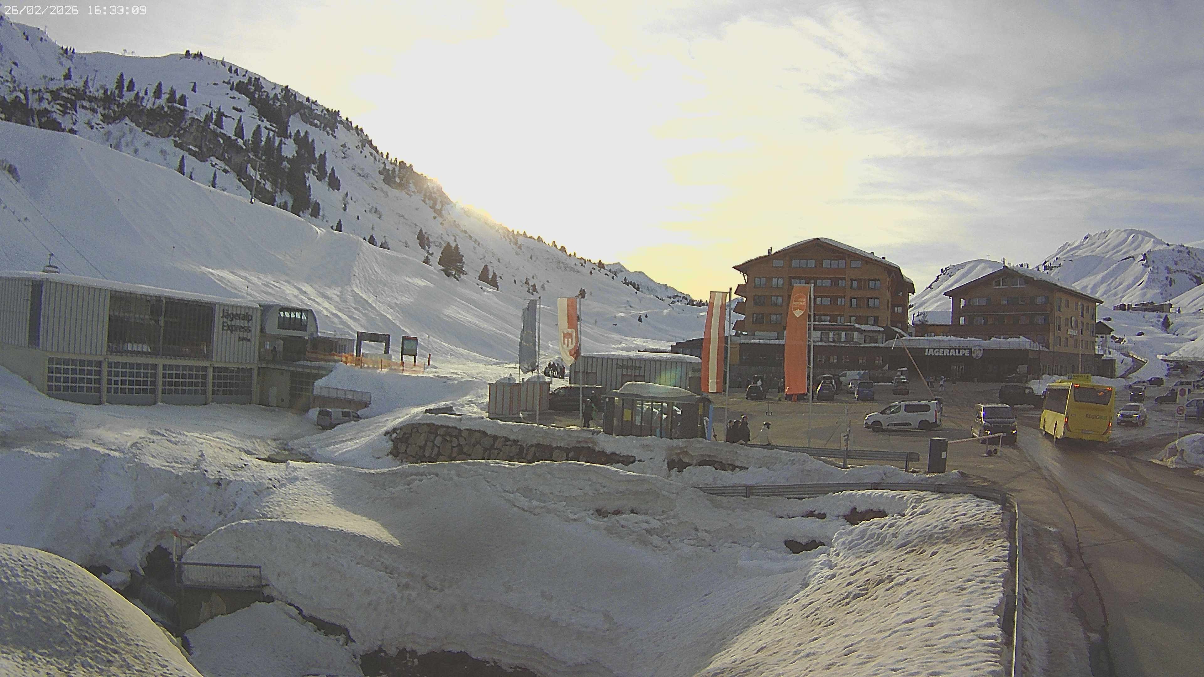 Archived webcam image showing Jägeralpe: View Ski Hotel on Feb 26, 2026 at 4:38 PM Aktuell