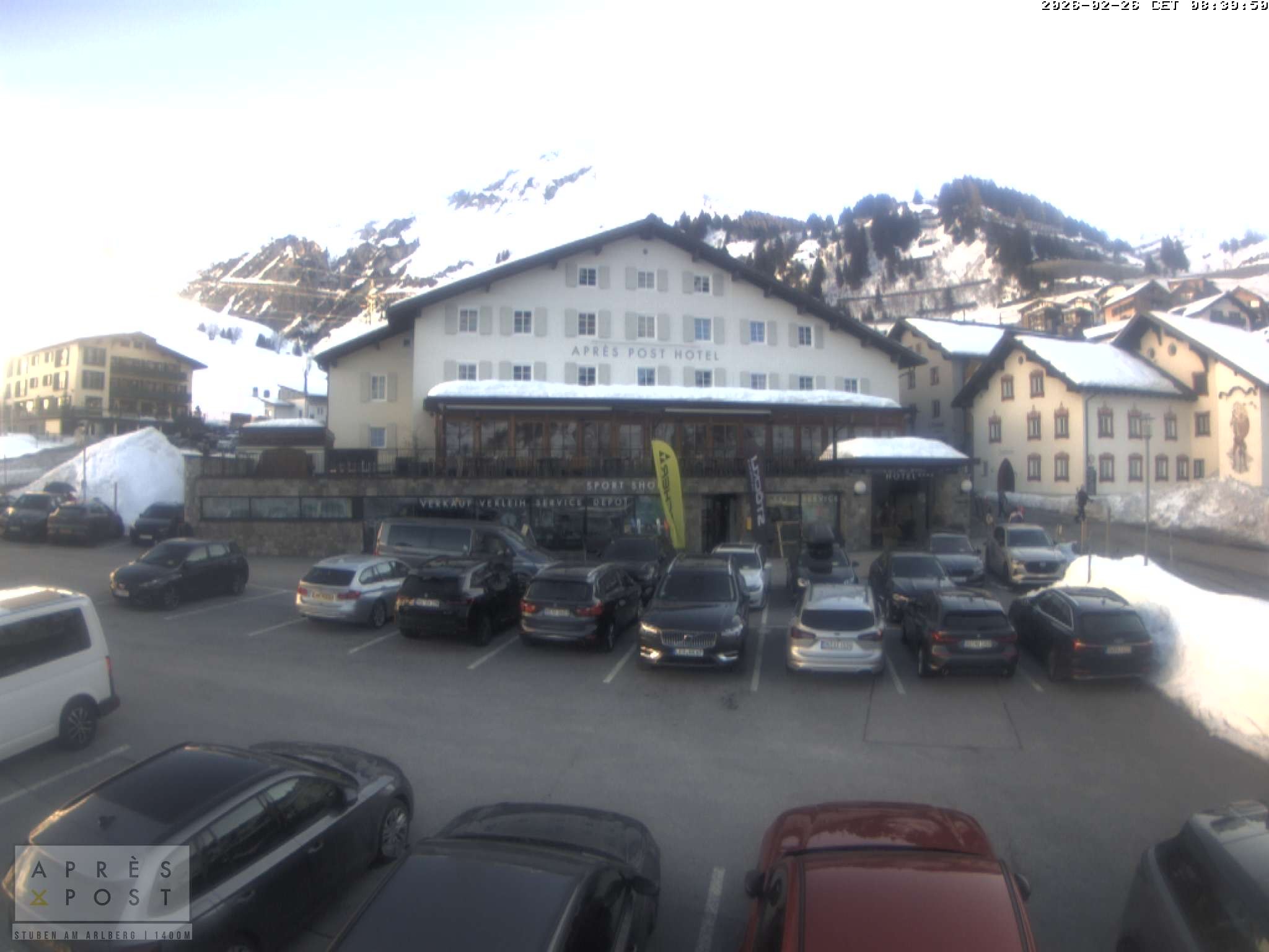 Archived webcam image showing Stuben: View Hotel Après Post on Feb 26, 2026 at 7:51 AM 1:00 AM