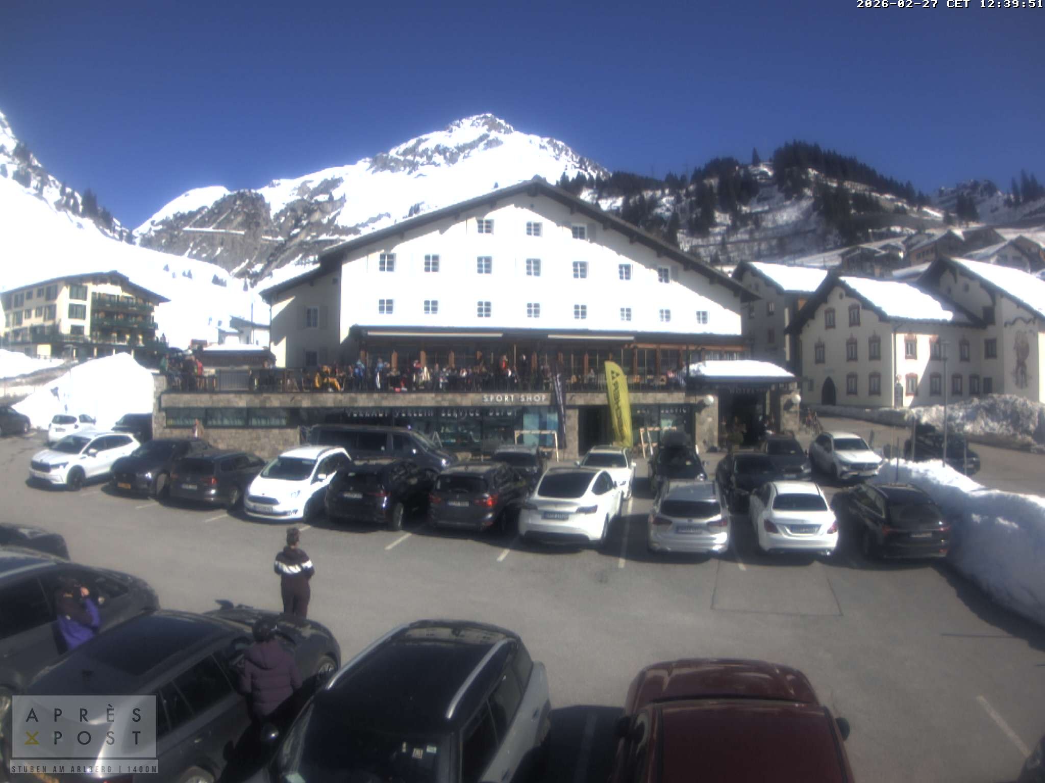 Archived webcam image showing Stuben: View Hotel Après Post on Feb 26, 2026 at 4:51 PM Aktuell