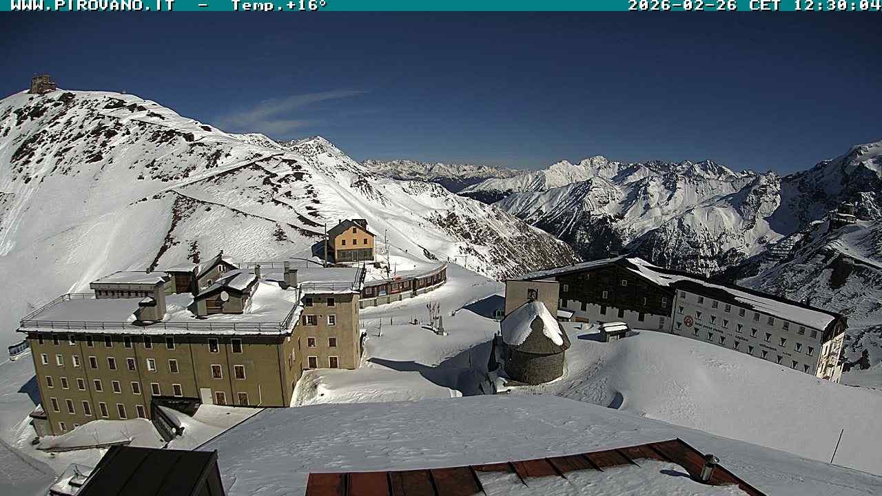 Archiviertes Webcam Bild: Stilfserjoch: Albergo Quarto Pirovano am 26 Feb 2026 um 16:08 Uhr Aktuell