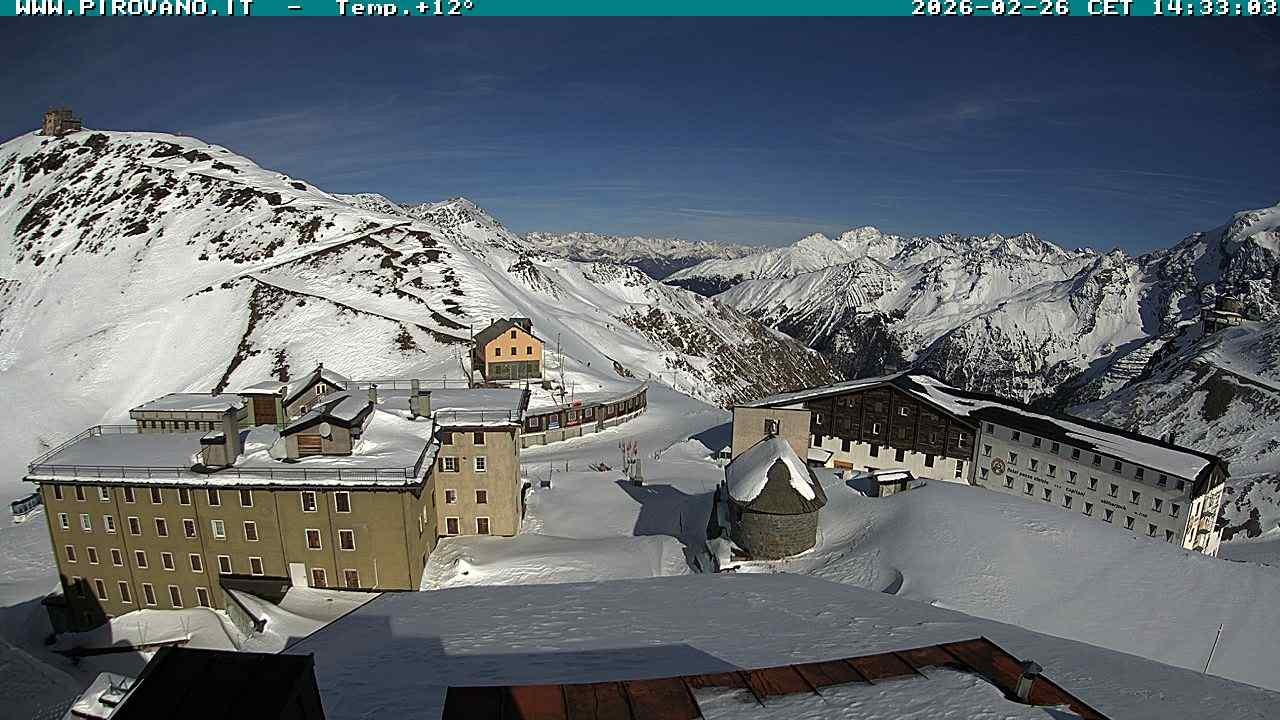 Archiviertes Webcam Bild: Stilfserjoch: Albergo Quarto Pirovano am 26 Feb 2026 um 14:08 Uhr 13:00