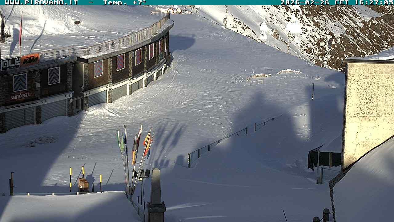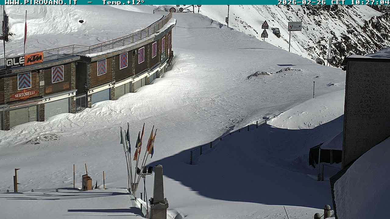 Archived webcam image showing Mountain Pass Stilfserjoch on 26 Feb 2026 at 12:57 11:00