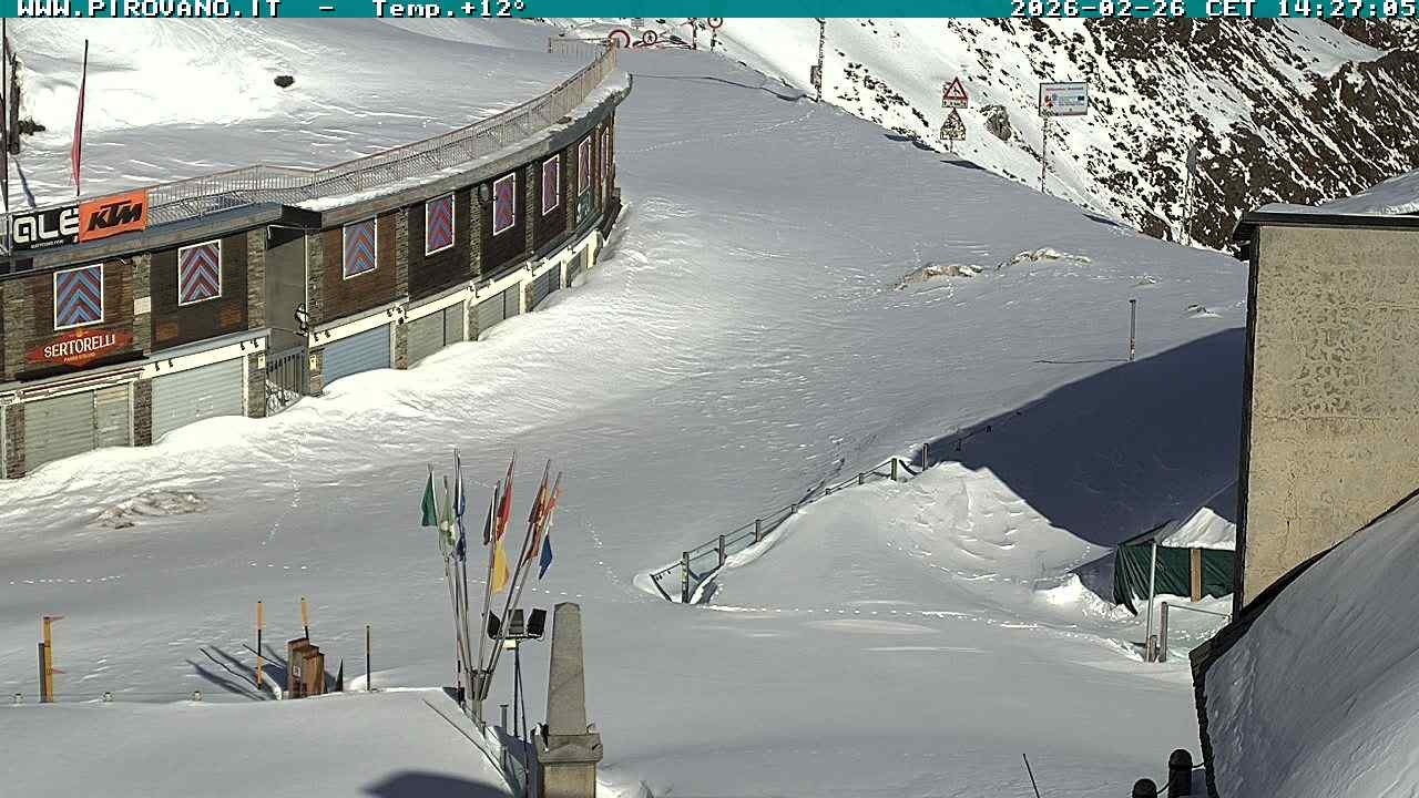 Archived webcam image showing Mountain Pass Stilfserjoch on 26 Feb 2026 at 14:57 13:00